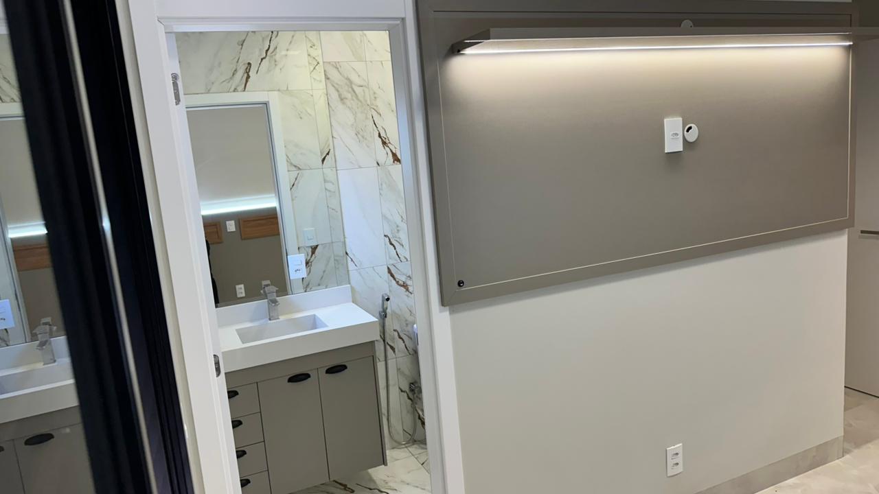 • 3 suites, sendo, a master com closet com espelhos e com espelho. Todas as suítes com armários embutidos, painéis de TV e cabeceiras com Led.