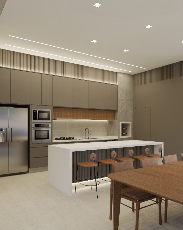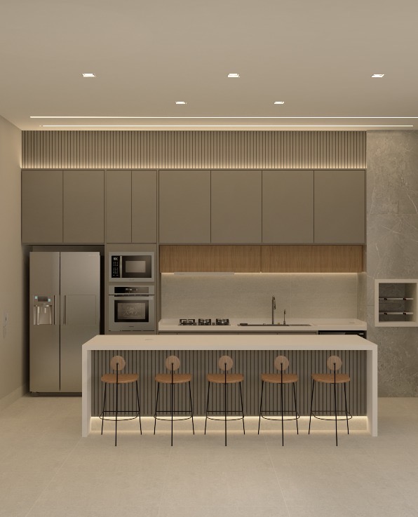 • Cozinha completa com: Geladeira microondas, forno, cooktop